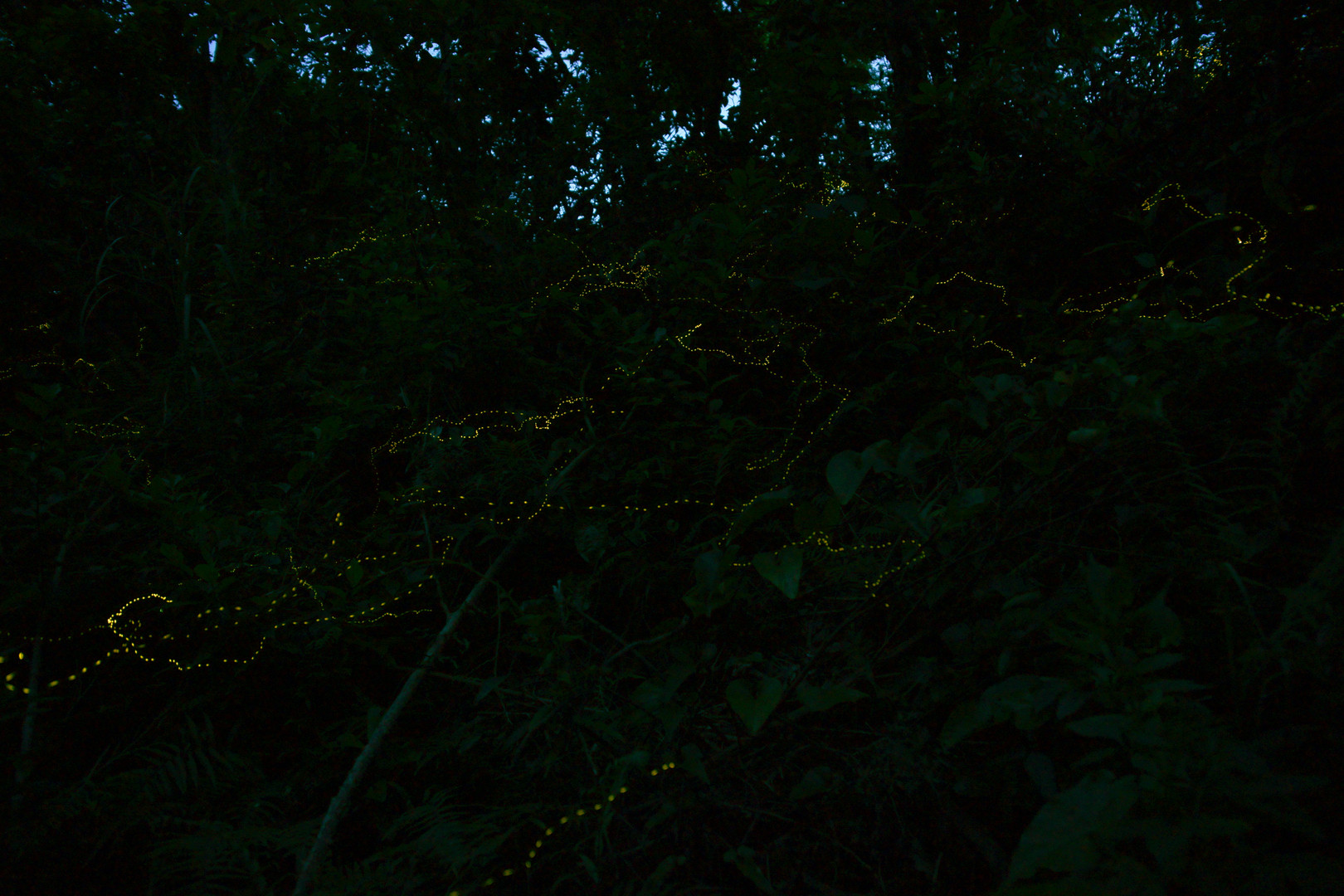 初めてのホタル撮影に挑んでみました。 ヤエヤマボタルはとても小さいのですが、 点滅周期が速くLEDのように発光していました。 故に、線ではなく点になるようです。 これから各所でシーズンですので、機会があればまたホタル撮影に挑戦しようと思います。