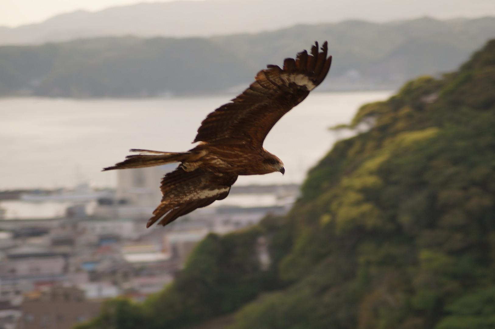 房総に訪れた時に近くまで寄ってきたトンビです。 ピントが甘いのが残念。