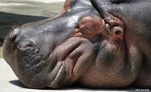 動物園で、お昼寝してるカバを写したら ゴワゴワのヒゲだらけでした。
