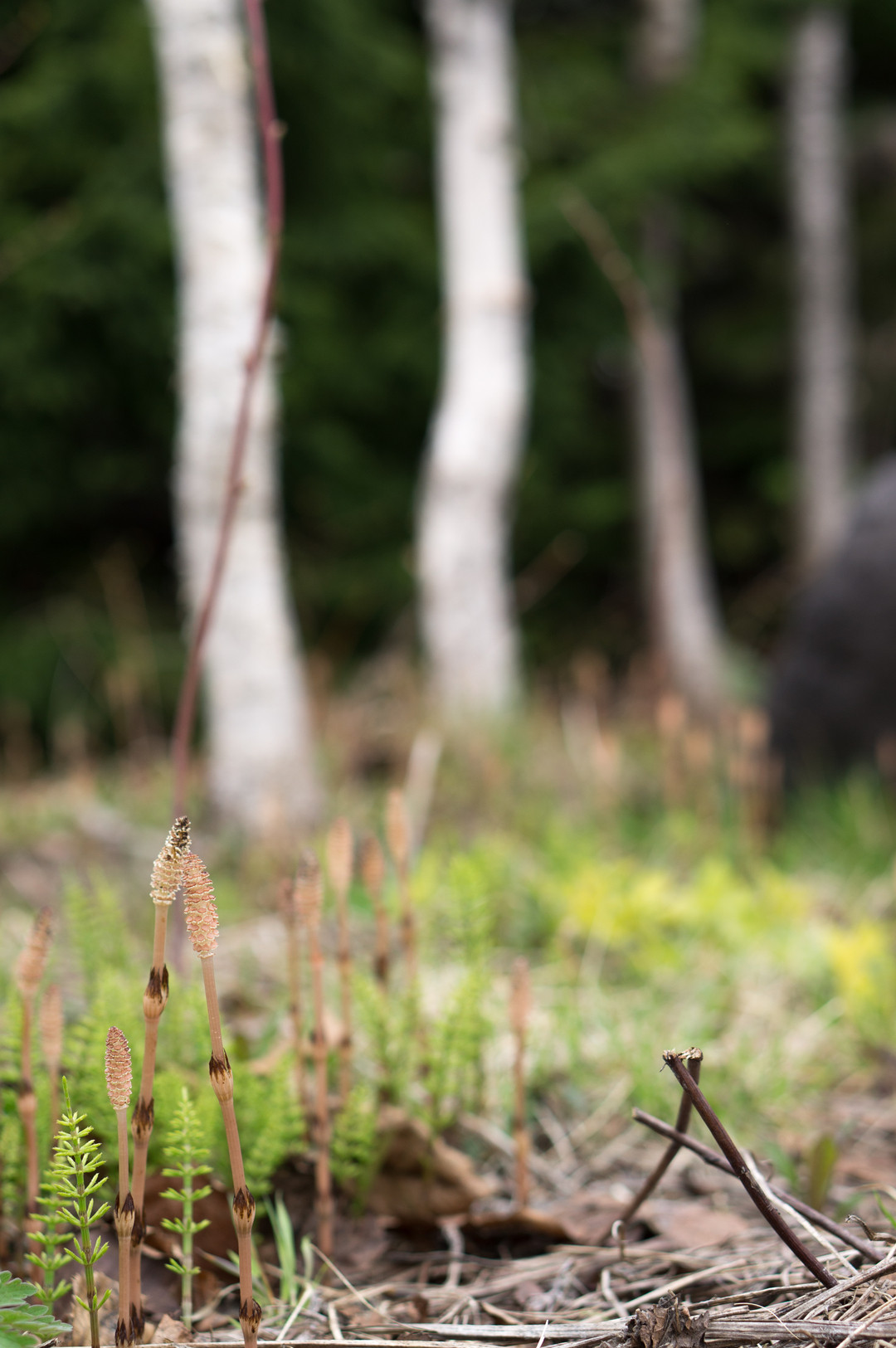 土筆を撮ろうと思って撮ったら、枝も寄り添っていました。 この土筆、なんか夫婦ぽっいかなって思います。 手前にいるのが子供みたいな。