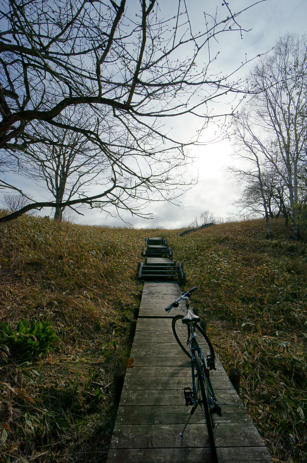 数10年ぶりの自転車、初めてのクロスバイク、初乗り60km 3日続く筋肉痛、お尻の痛みっ。 湿原の中は階段だらけでほとんどかついで歩いてた(´・ω・`)