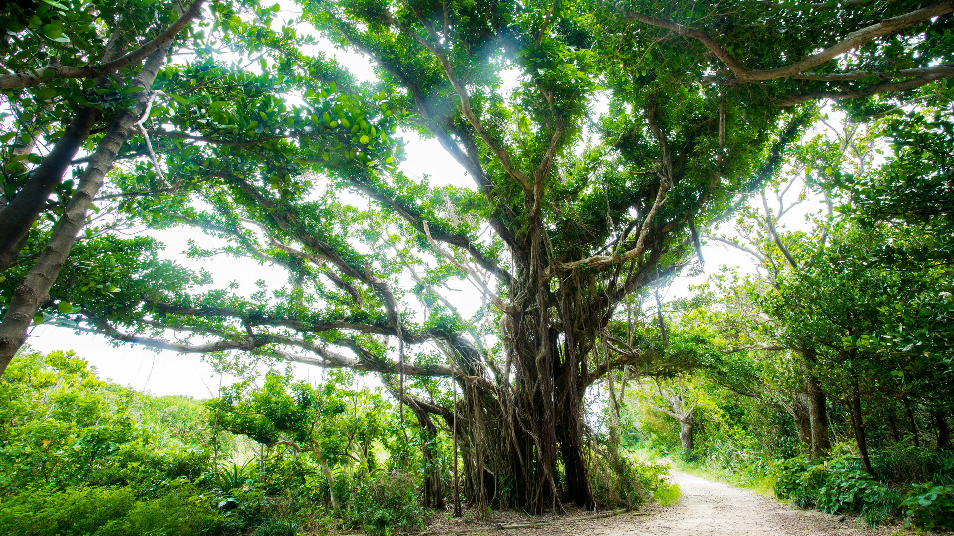 沖縄神話の聖地「久高島」で出会ったガジュマルの巨木。 誰もが立ち止まって見上げる不思議な木でした。