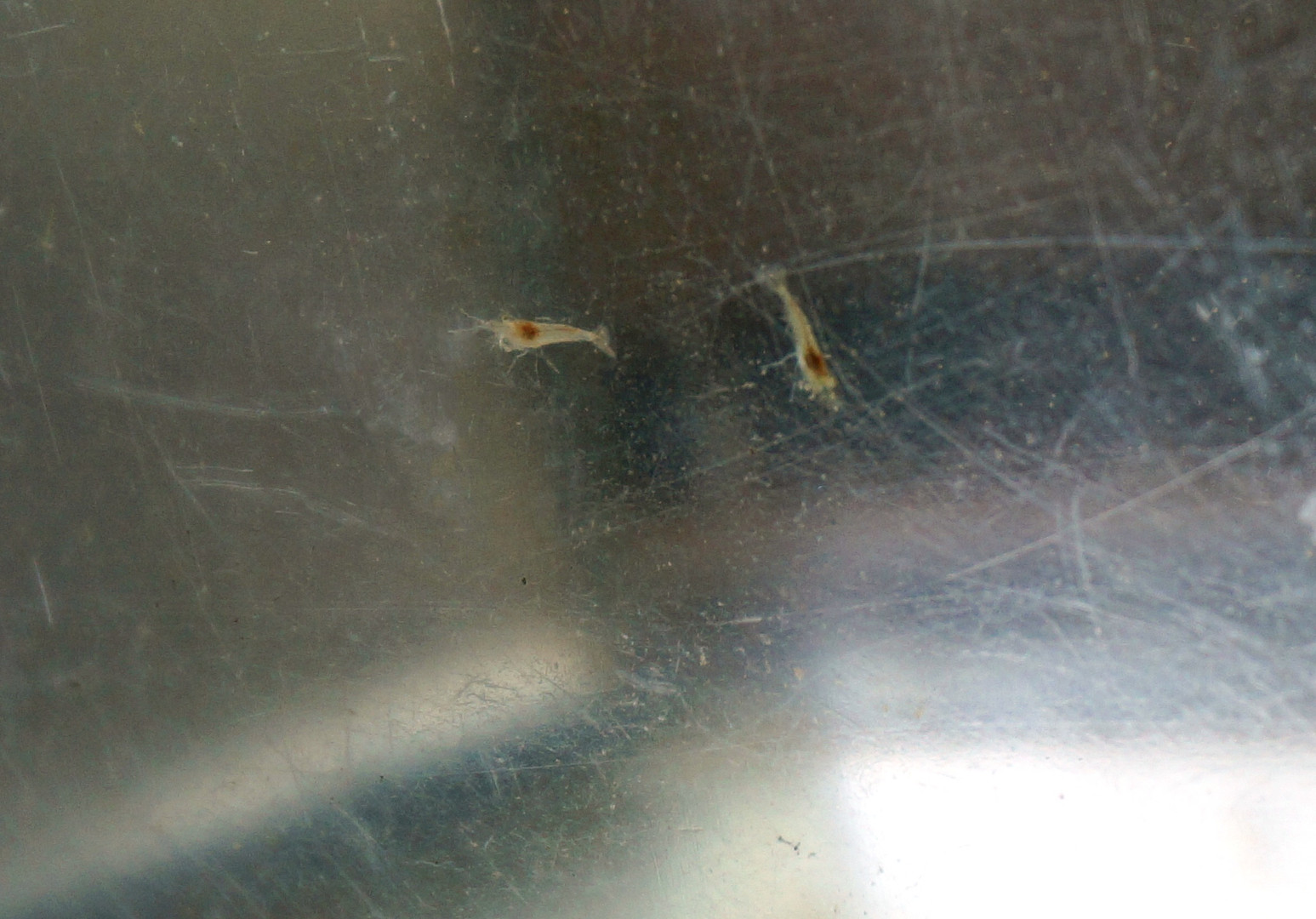 ミナミヌマエビの仔エビが育っていました。 日頃どこに隠れていたのか? 大掃除で発見、ブラバチで撮影。 (ピントいまいちでした) 小さいのでトリミングしています。