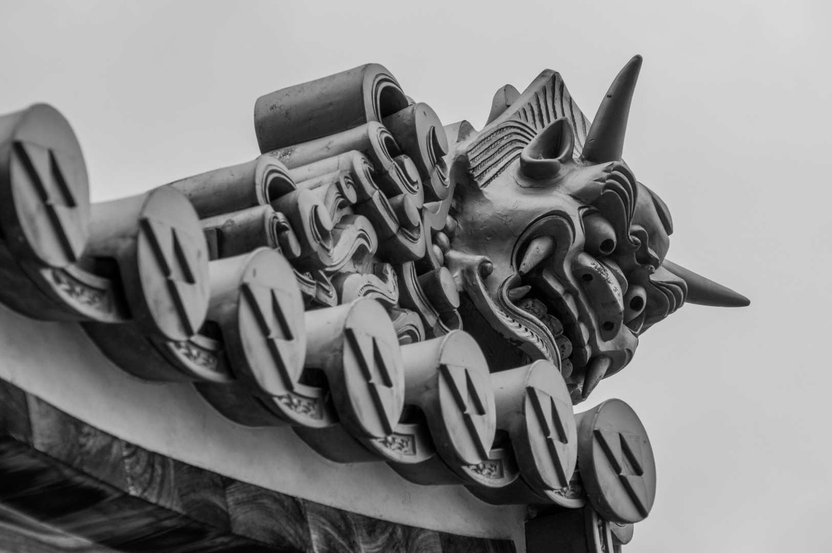 お寺の鬼瓦です ド迫力でにらんできます こどもは怖がります