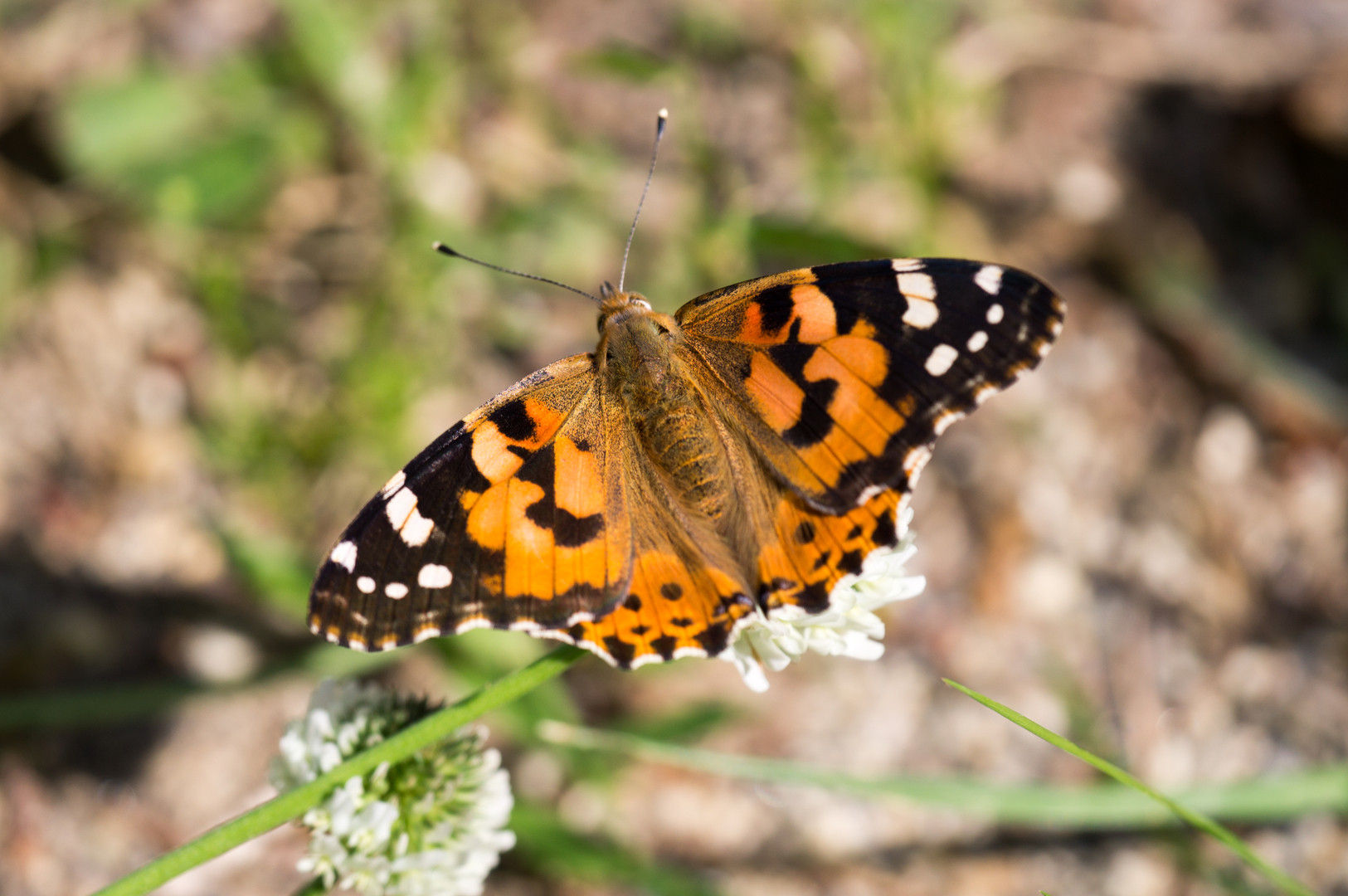 久しぶりにチョウが撮れました。 ヒメアカタテハでしょうか。 目の前のシロツメクサに急に 飛び込んできたところをいただきました。