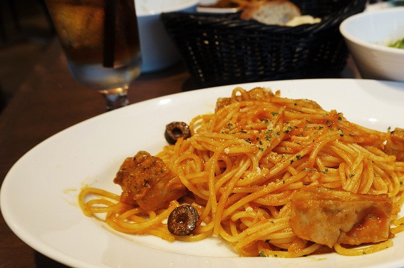 ランチのチキンとトマトのパスタランチです 若干 色補正を画像ソフトでしちゃいました。。。 まだまだ 色々なものを撮らないと綺麗にとれませんね アングル 角度 色。。。 いろいろ難しいです