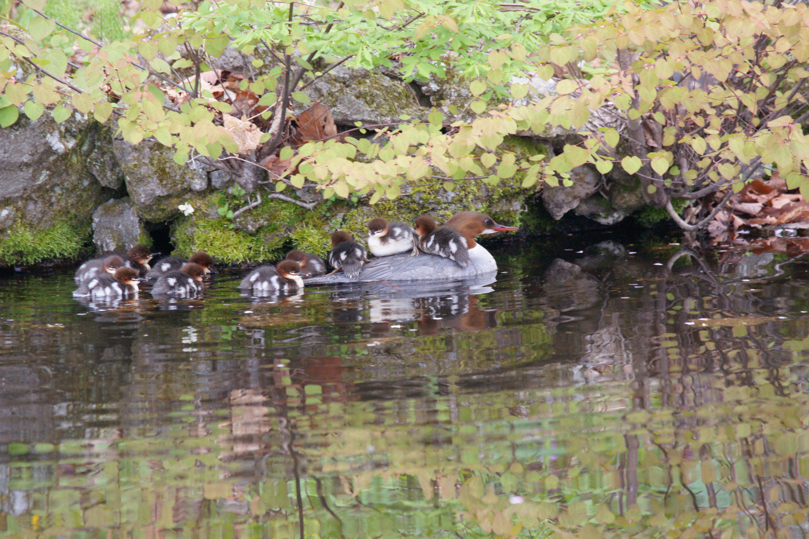 カワアイサの親子-10
