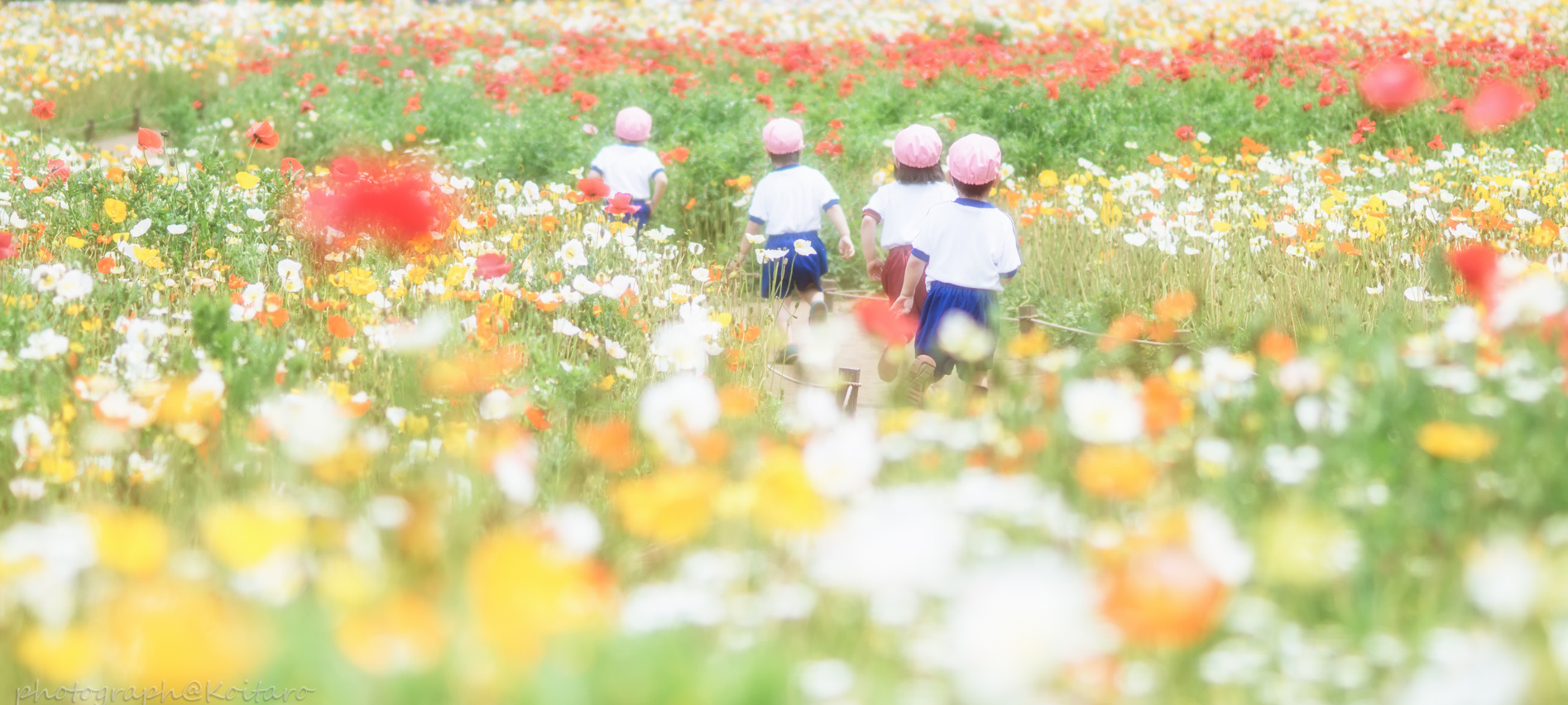 目の前に広がるポピー畑の中を、 遠足の子供達が楽しそうに 走って行きました∞’’’ヾ(^o^ヾ)♪ かなりビビッドな空間でしたが 心の中のイメージはこんな風に 映っていました~(*´U`*)