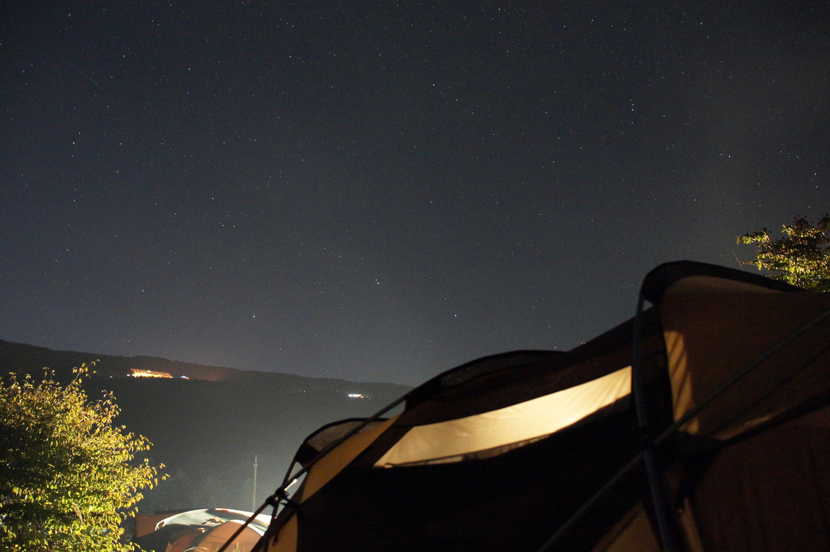 2011年秋に嬬恋にキャンプに行った時の写真です。 星空が見事だったので、設定もわからず初めて撮影してみました。 人工衛星のようなものが偶然写り込んでいました。
