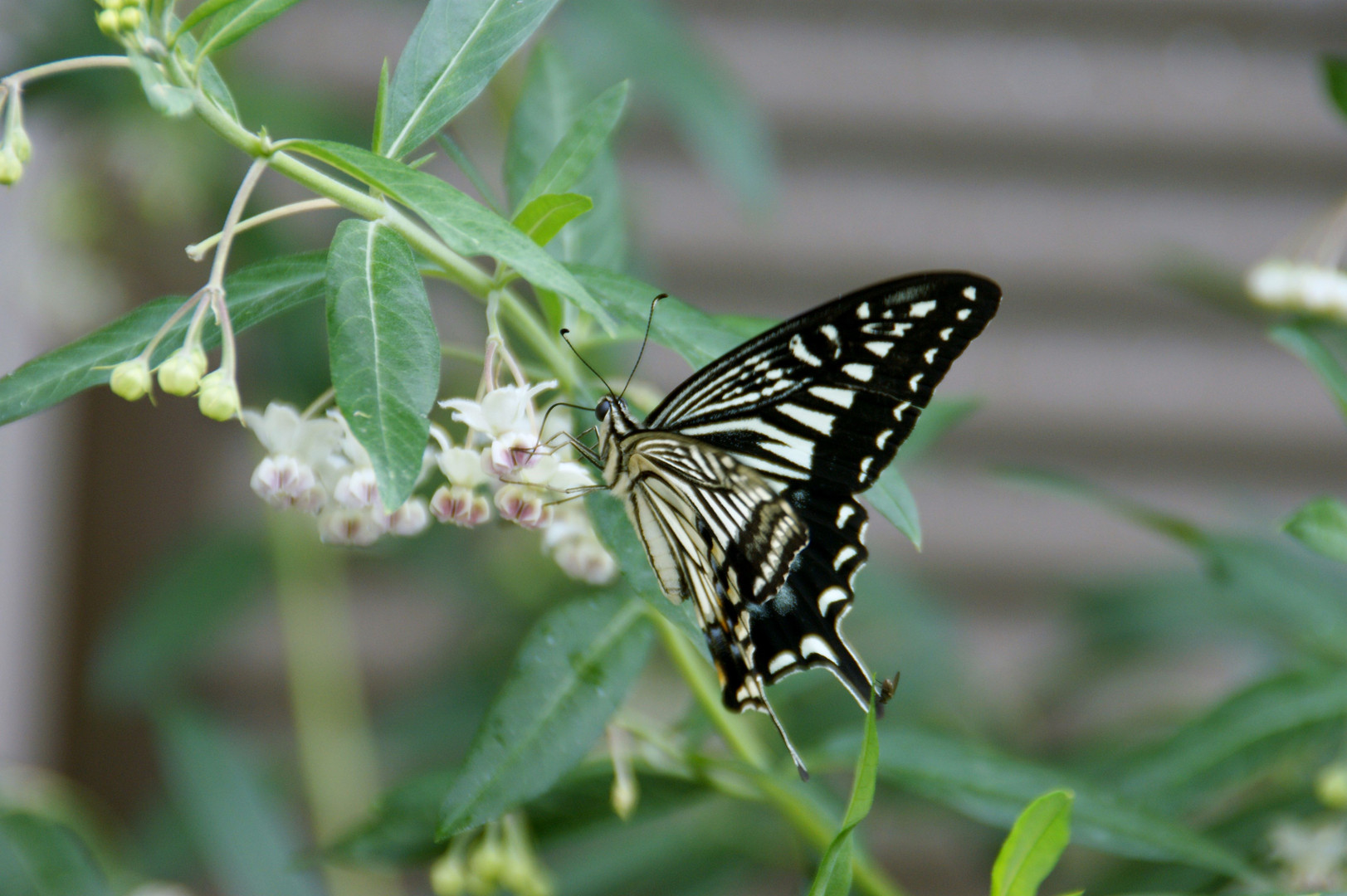 丁度タイミングよくアゲハ蝶がやってきました。逃げても何度もやってきました。花蜜が美味しかったのでしょうか?