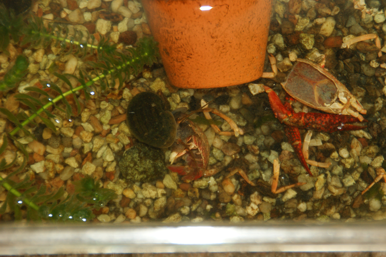 ザリガニの水槽にタニシを入れていたらタニシに殺られました。無残でした。