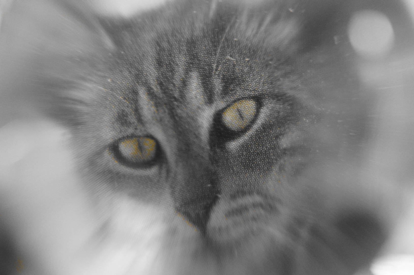 猫の絵画に水晶玉を寄せて撮りました。