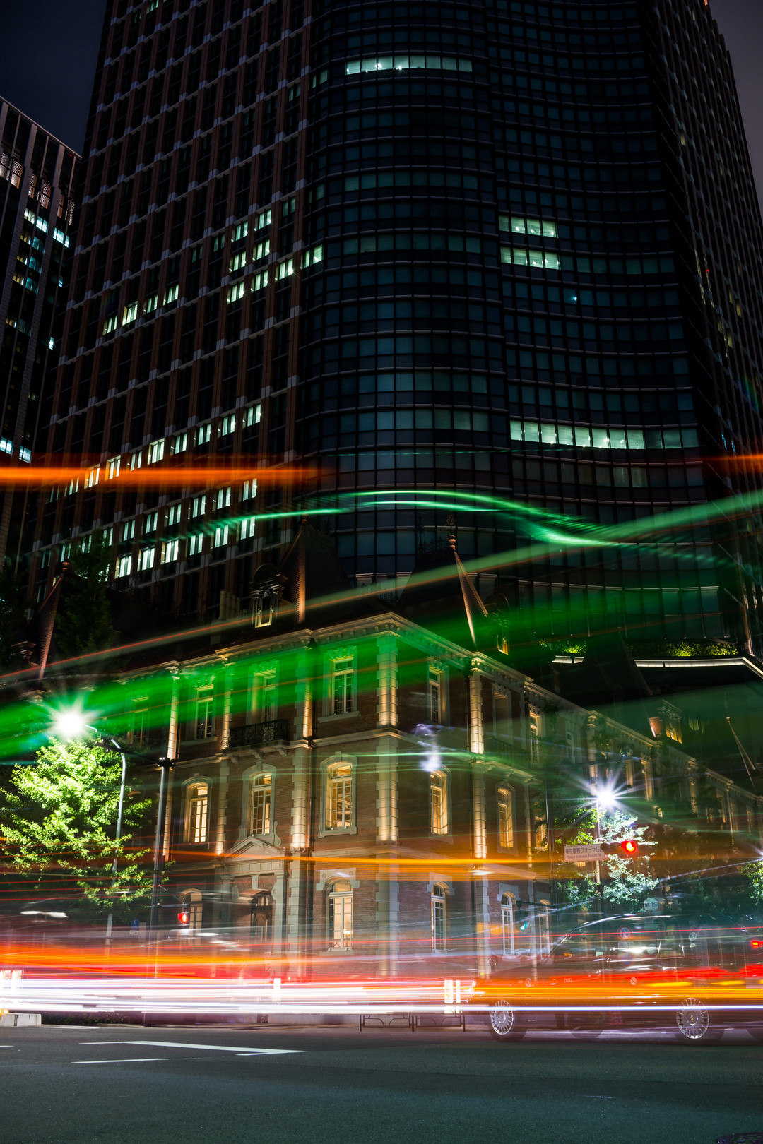 丸の内三菱一番館美術館前 日曜日の夜でも交通量は多いようで・・・