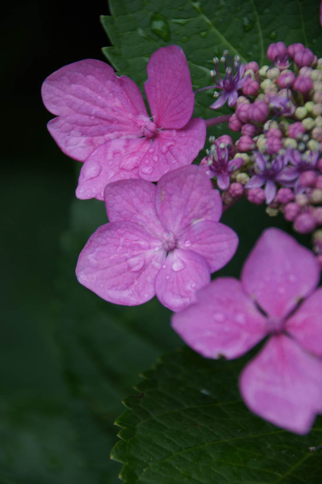 小雨模様のお天気、紫陽花にぴったりの雨です。
