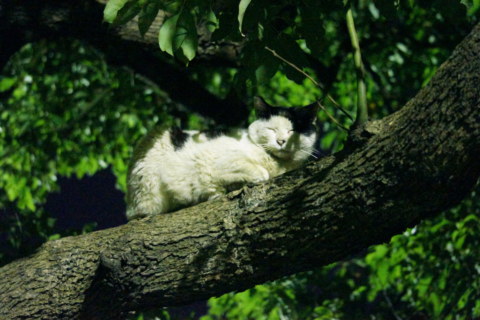 夜行性と聞いていたので夜中に公園へ ニャンコの運動会中かな?と思って行ってみたら。。。 ぐーぐー寝てた。しかも木の上で(*´ω`*)