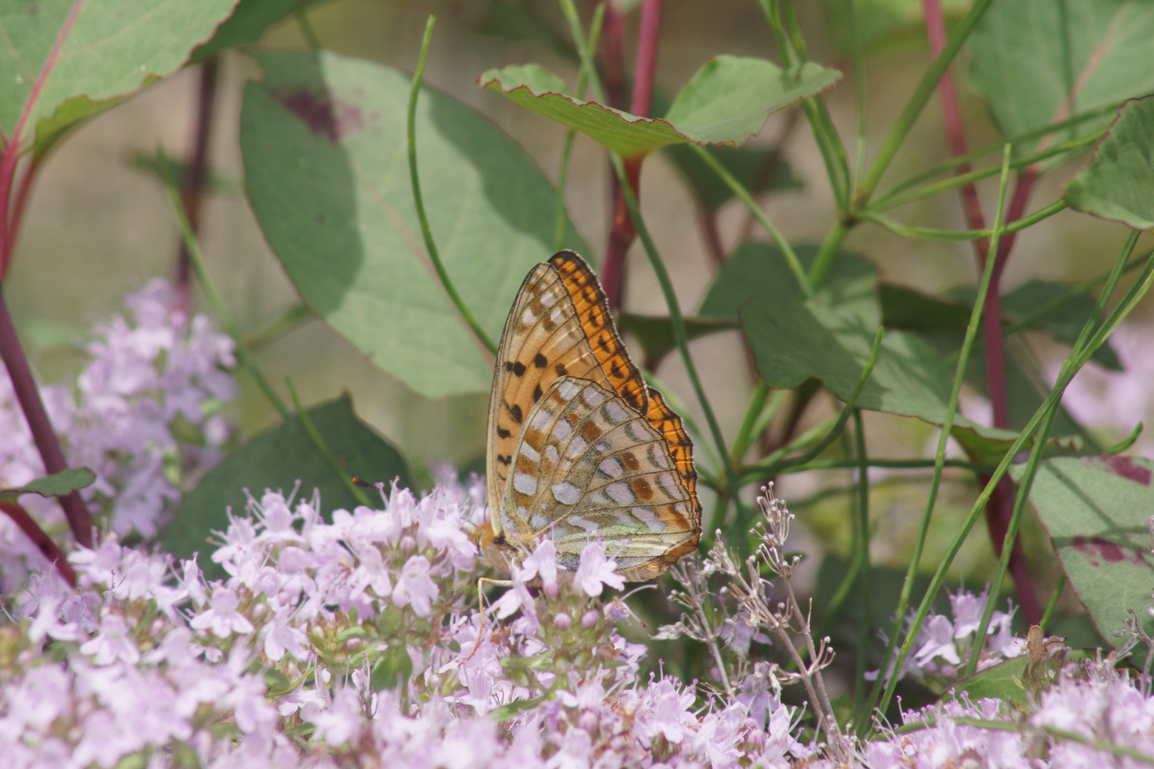 ギンボシヒョウモンが花の蜜をすっています