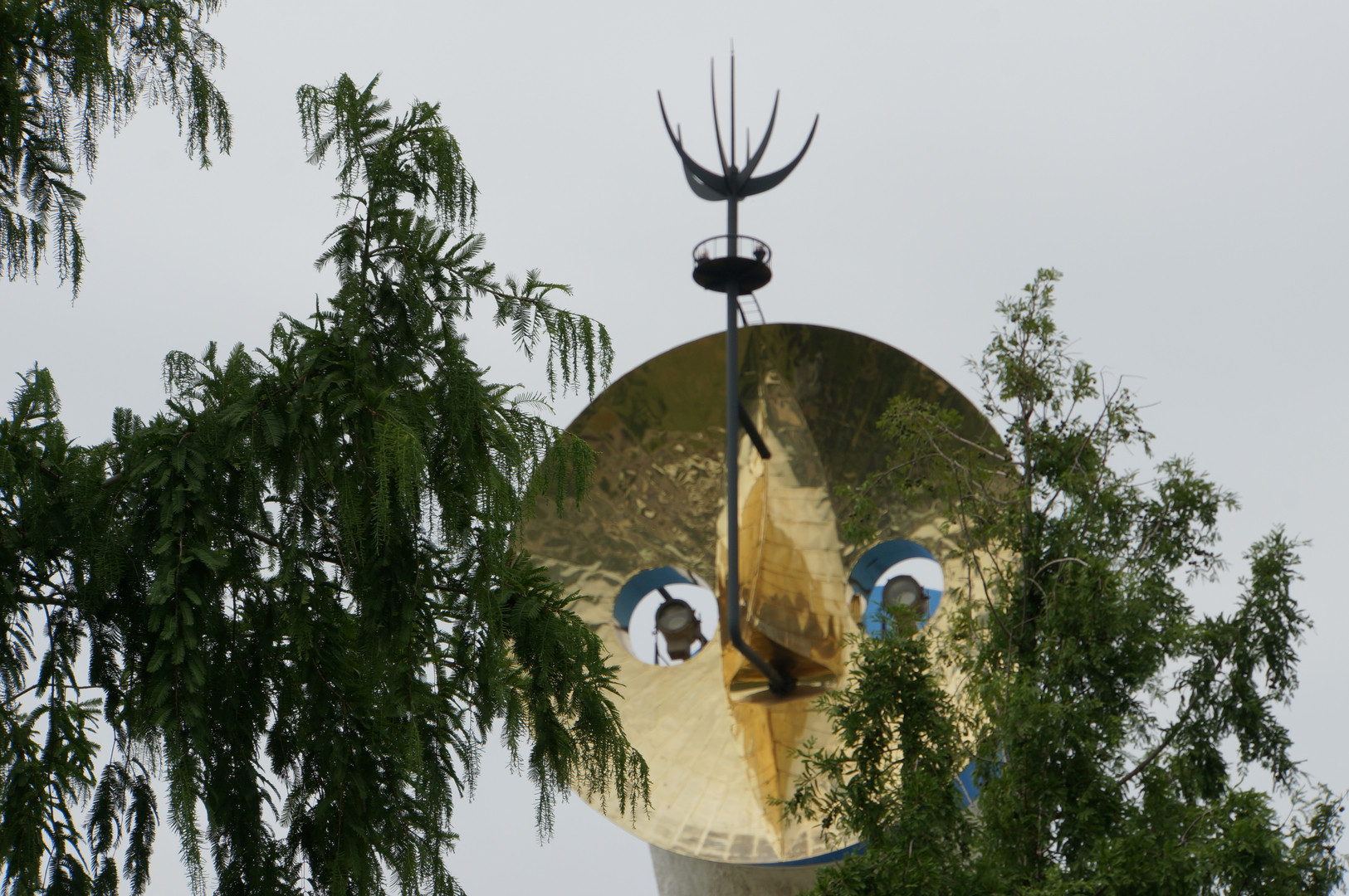木立の間から世間を覗く太陽の塔。