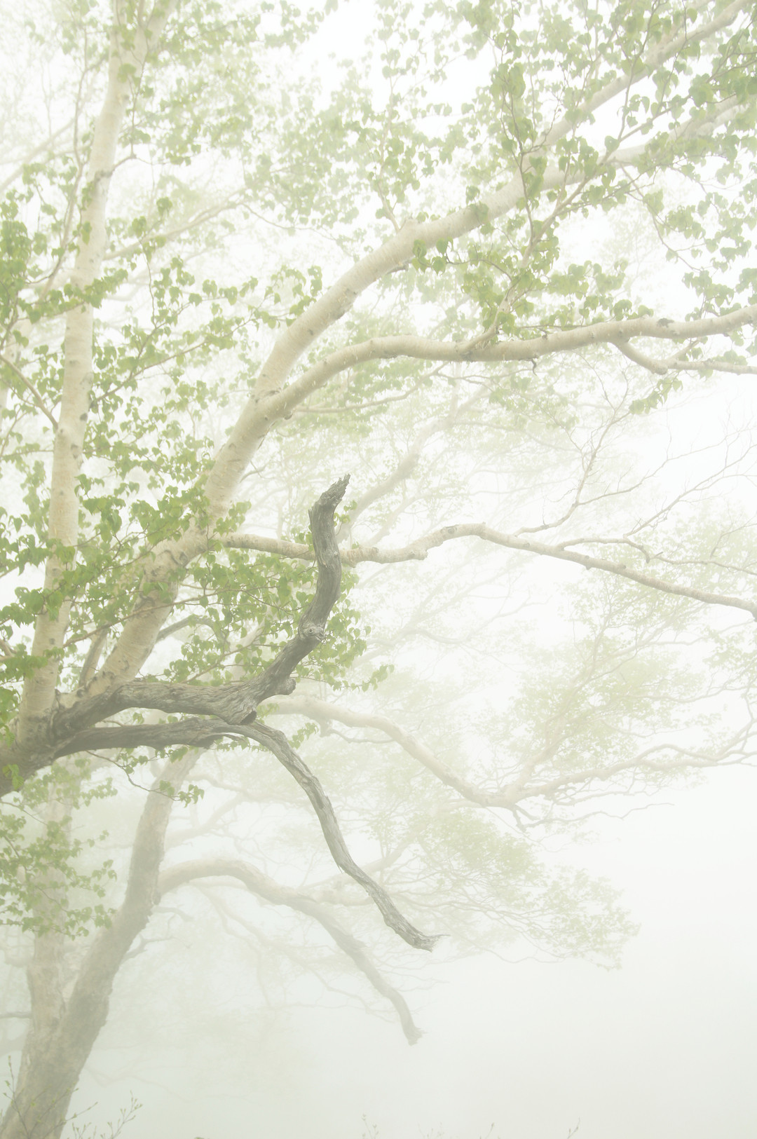 霧の中にたたずむダケカンバが何とも言えない美しさでした。