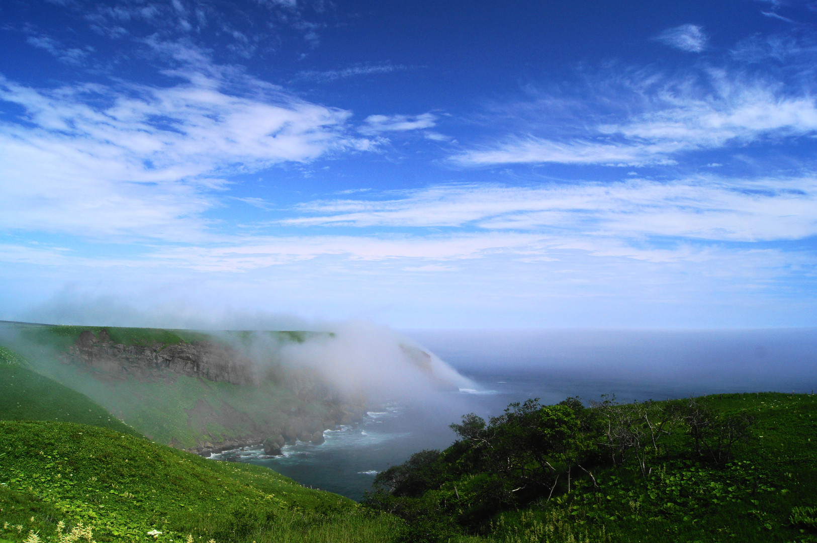 久々に晴れたので海までドライブ。 霧が崖を登る写真が撮れました