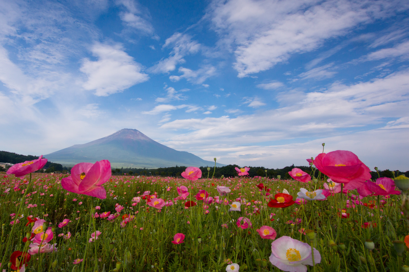 赤富士と霧