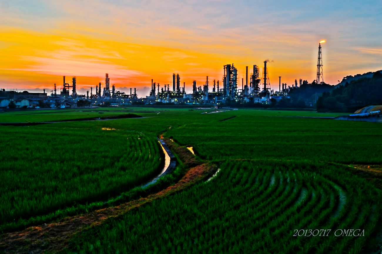 太陽石油・コンビナートの夕焼けのフレアスタックを ソニーA57の「絵画調HDR」で撮影してみました!、 いい画の撮影ができました・・・。