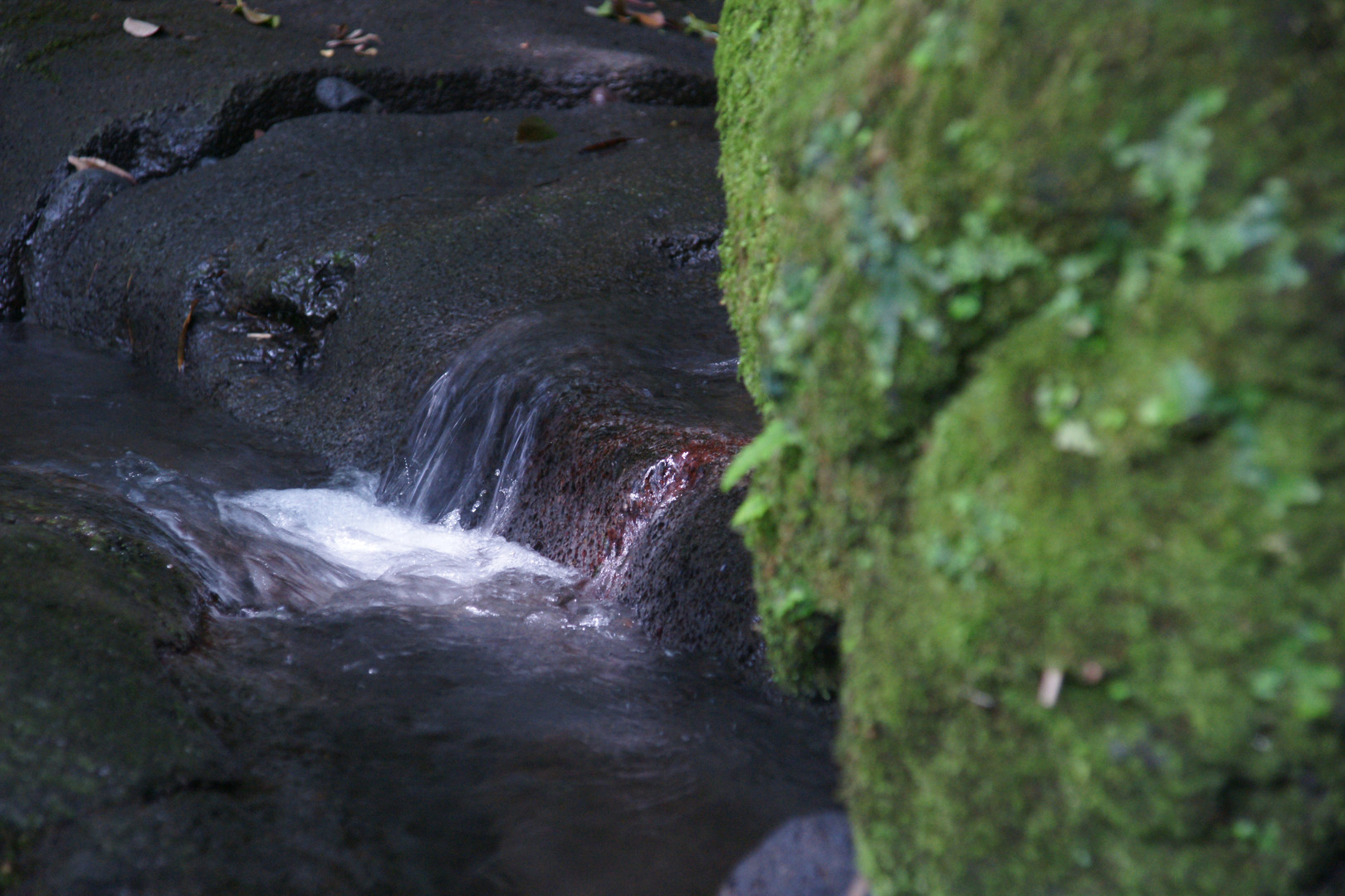 小さな流れに光が当たっているところをねらいました。