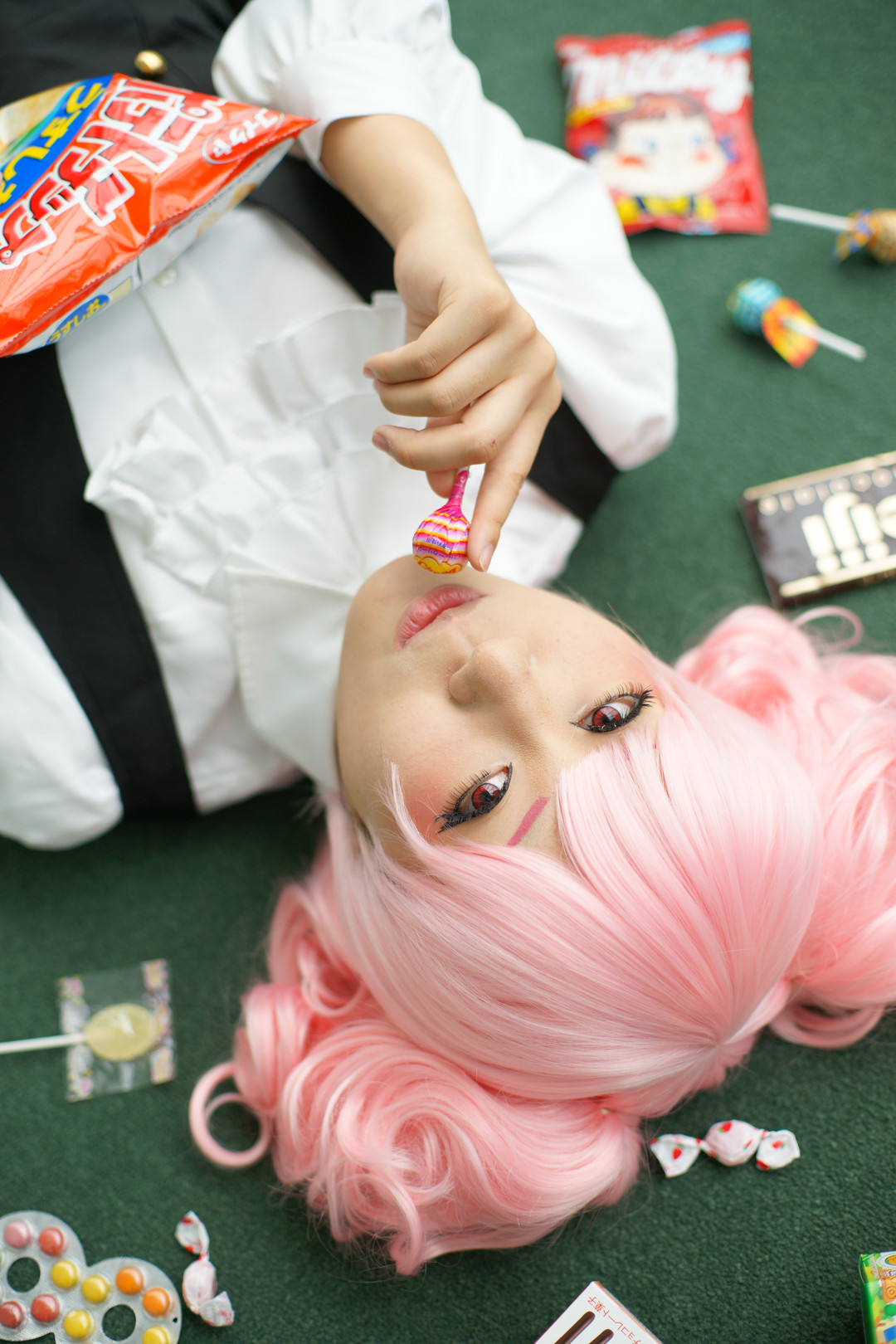 マンガのいぬ僕SS、かるたコスです。お菓子に囲まれて幸せそうw