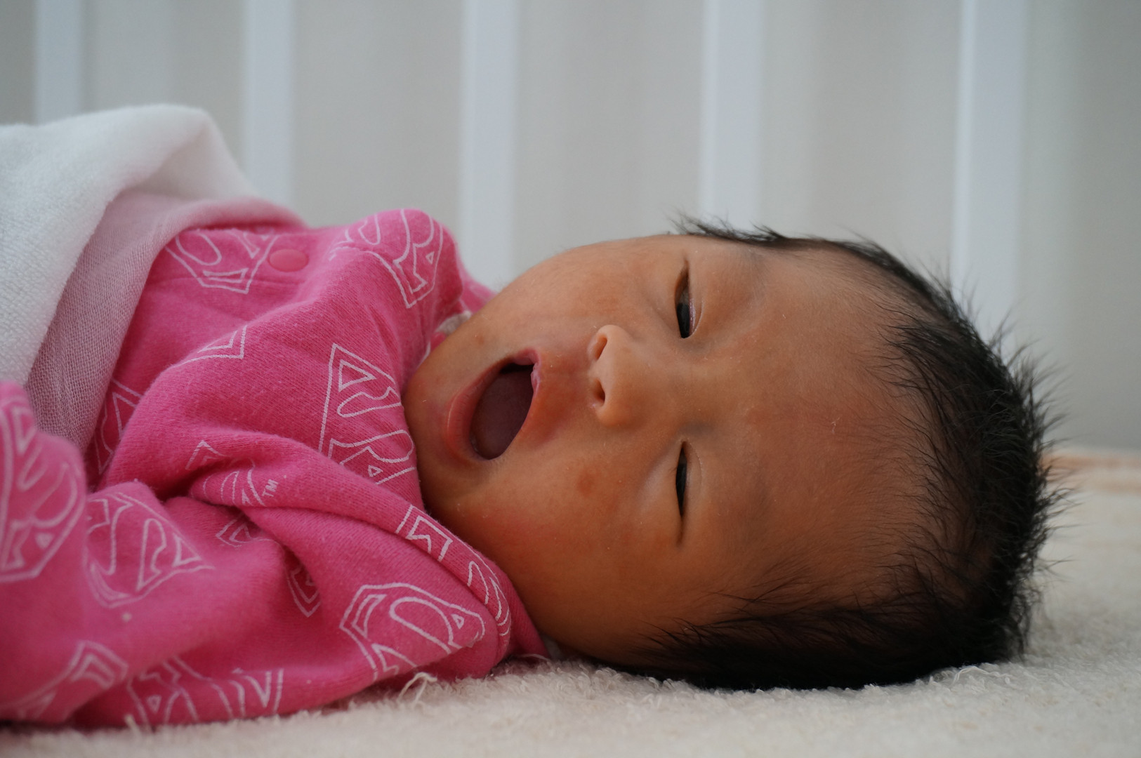 姪っ子が生まれたので、周りをウロウロしながらパシャパシャ撮ってみました。 良く眠る子なので、あくびをパシャリ。