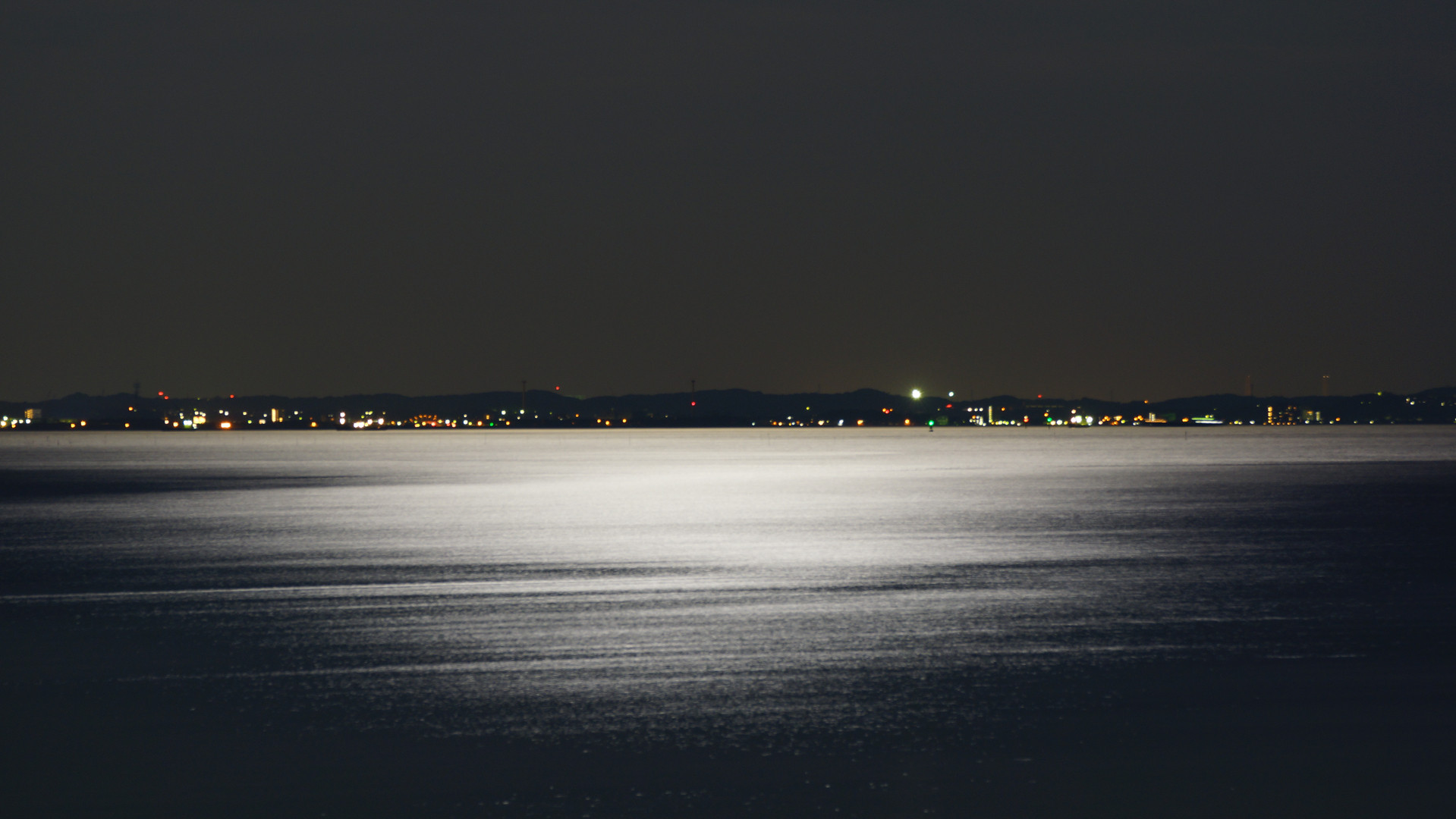 昨夜は満月でしたが、あいにくの曇り空。満月イブの前日の月夜はとても煌々と伊勢湾を照らしてました。