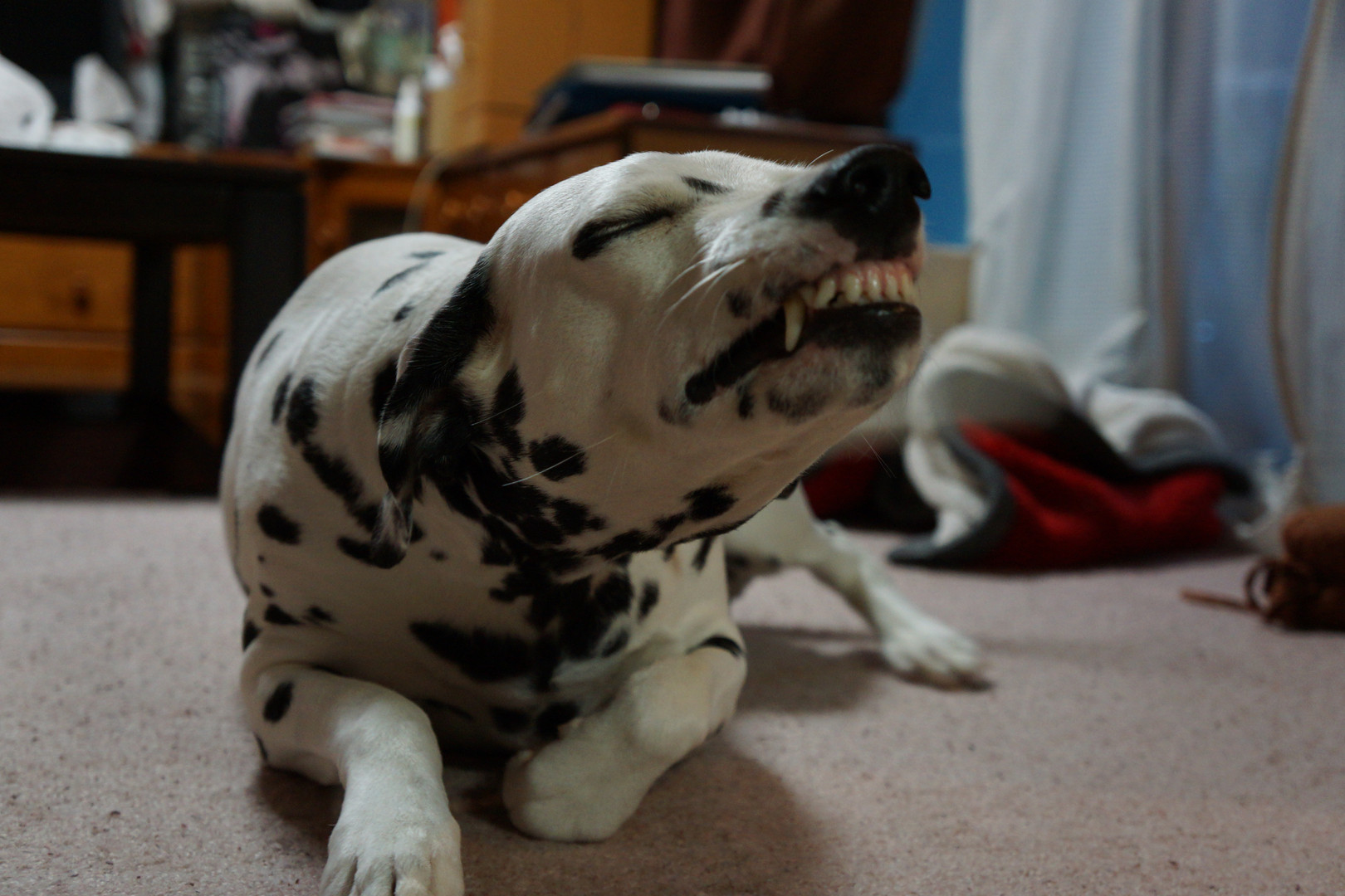 歯を見せ笑う犬