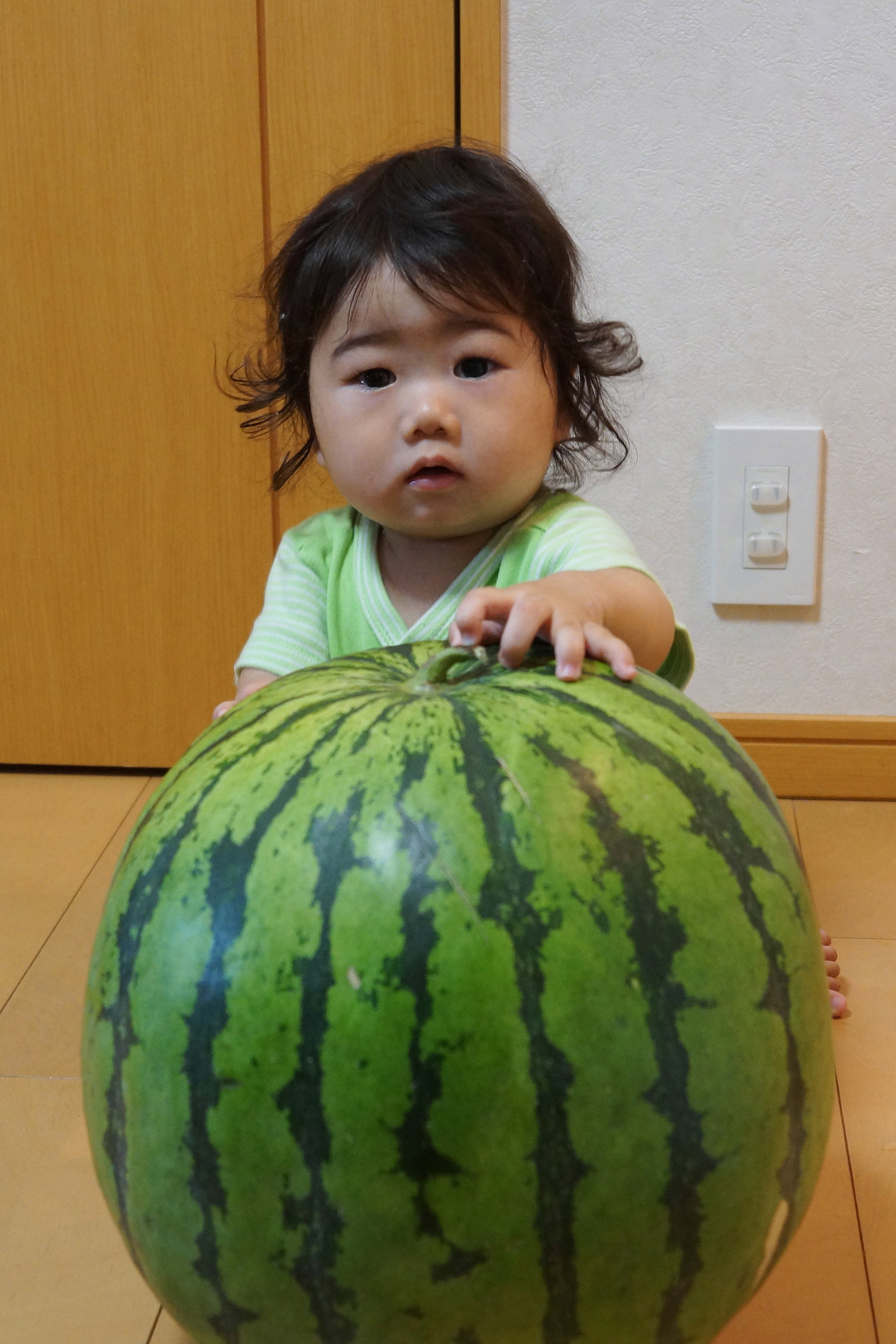 今年も田舎から大きなスイカが送られてきました^^