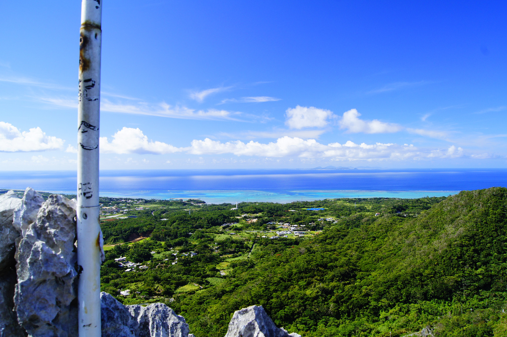 沖縄県本部町にある本部富士という山頂からの眺めです。 標高わずか240mですが、とがった岩の道のりが続きなかなか大変でした。 ですがこの素晴らしいご褒美をいただけたので十分です!