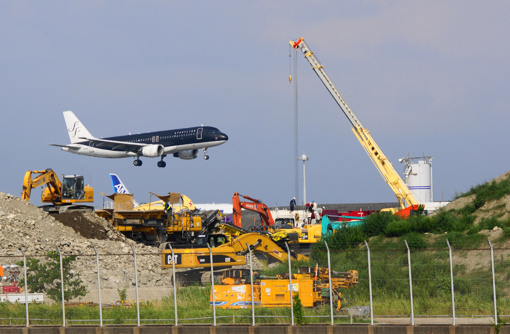 つばさ公園で飛行機の撮影をしていた時の写真です。 この狭い現場で、日立、住友、コベルコ、コマツ、CAT、加藤のショベル が稼働していて驚きました(?_?) 知らない人には、ナンノコッチャ!ですが・・・