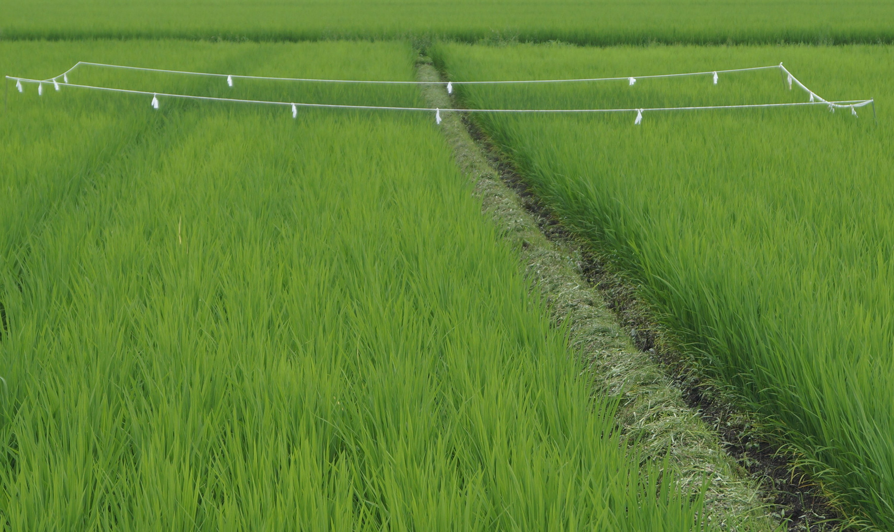 水田に落雷の時祭るそうです 意味は 被害が少なく済むように・天から神様が降りてきた?? いろいろ言われが、あるようです。 落雷の場所 稲の色が変わってます