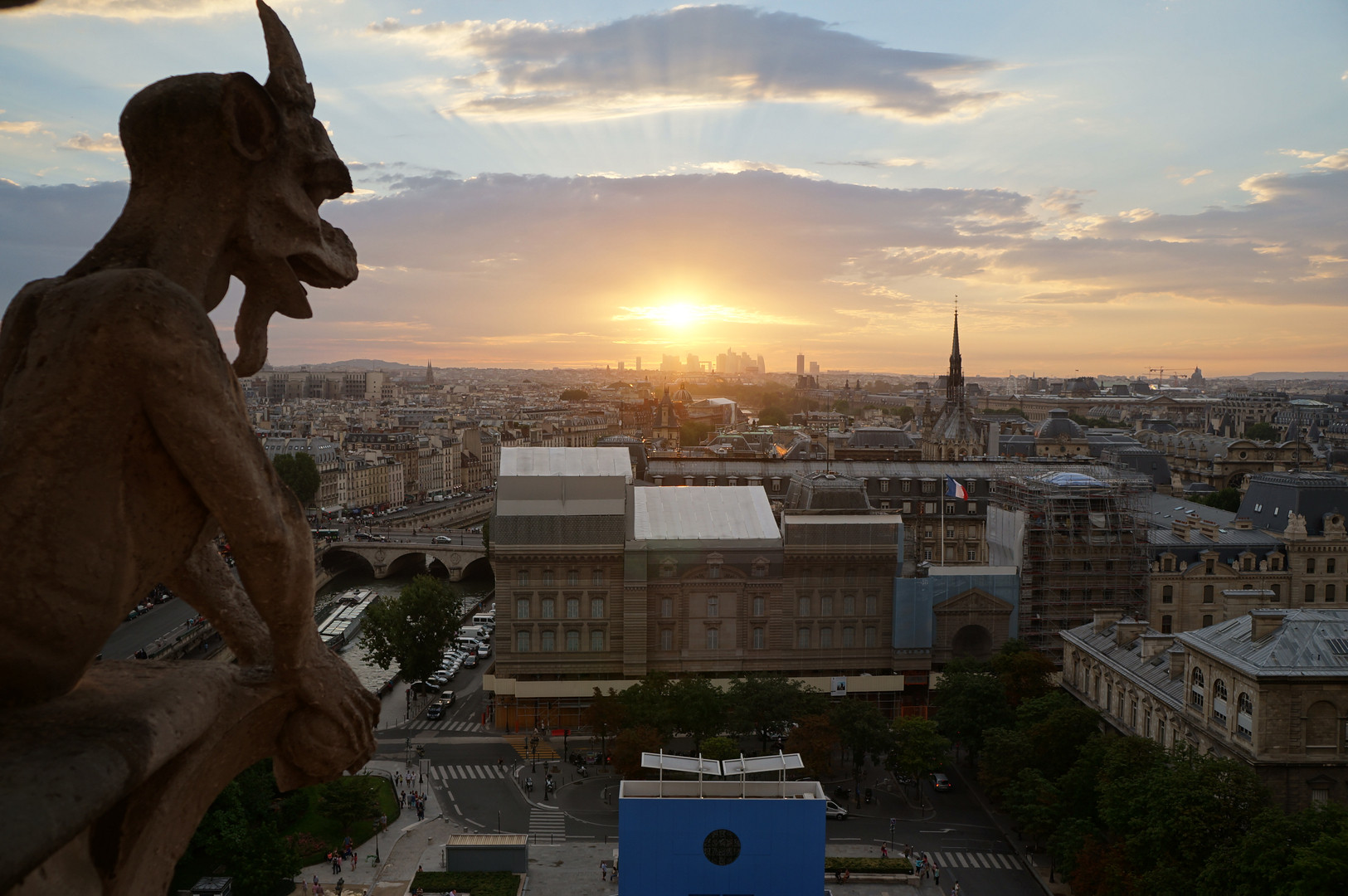 久しぶりにαカフェに来ました。 ノートルダム寺院の上に、夕暮れ時に訪れることが出来ました。 ガーゴイルが石に戻りそうな太陽の光を撮ることが出来たので、アップします。