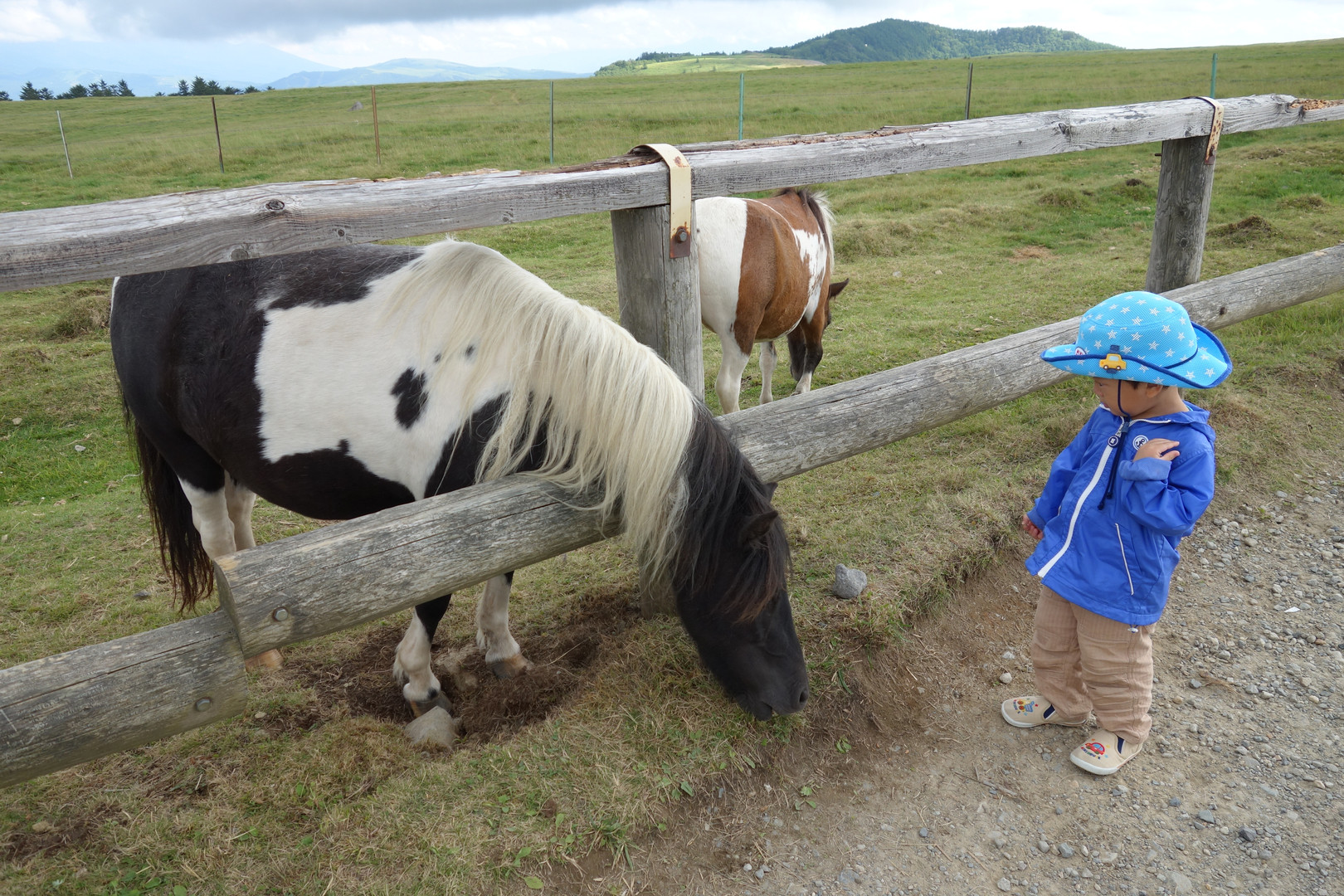 よそのうちの子どもです(汗) おっかなびっくりな様子がかわいらしかったので、 おもわず盗撮?してしまいました。 このあと、満足げに馬の頭をなでなでしていました(^^