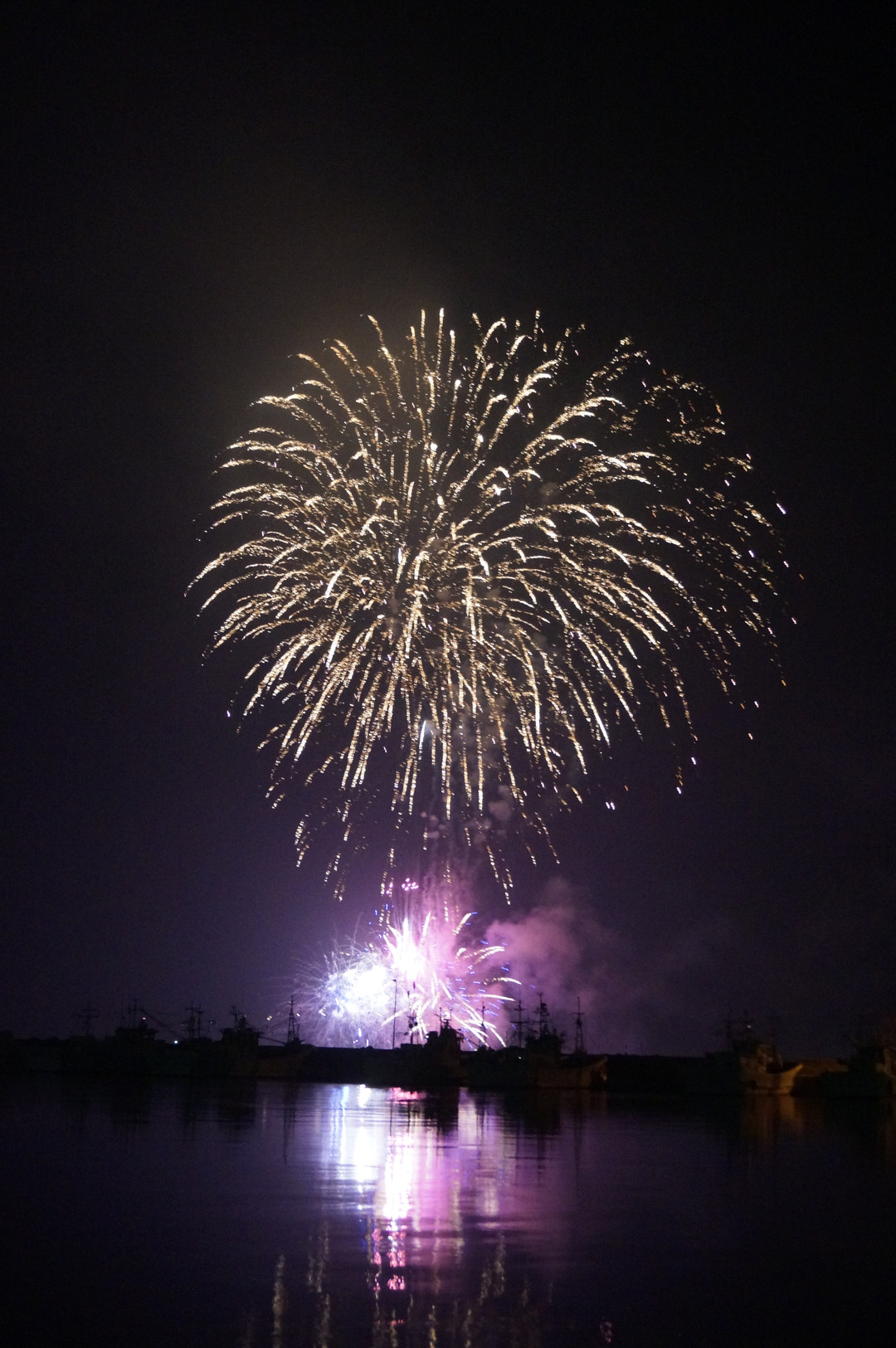 海から上がる 花火です 海面に映るのが きれいです