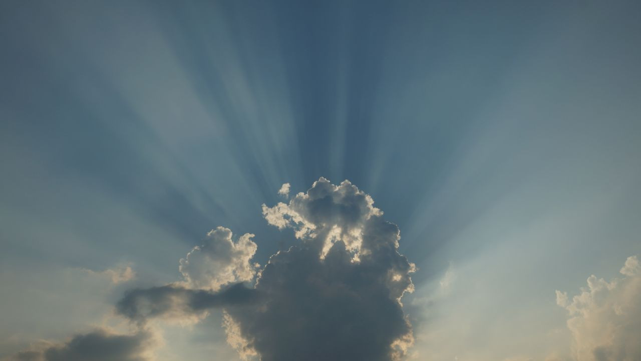 夕方、ふと見上げたら雲の影が空に映ってました。 光の帯がとっても綺麗だったので、思わずカメラを取り出して撮ってみました。