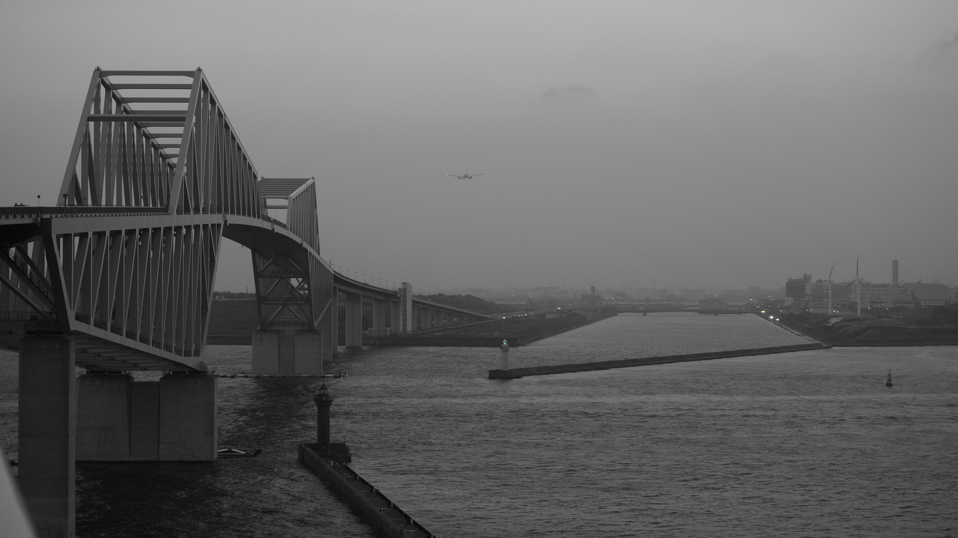 モノクロームな中に飛行機が飛んでいるのがなんとなく気に入ってます。