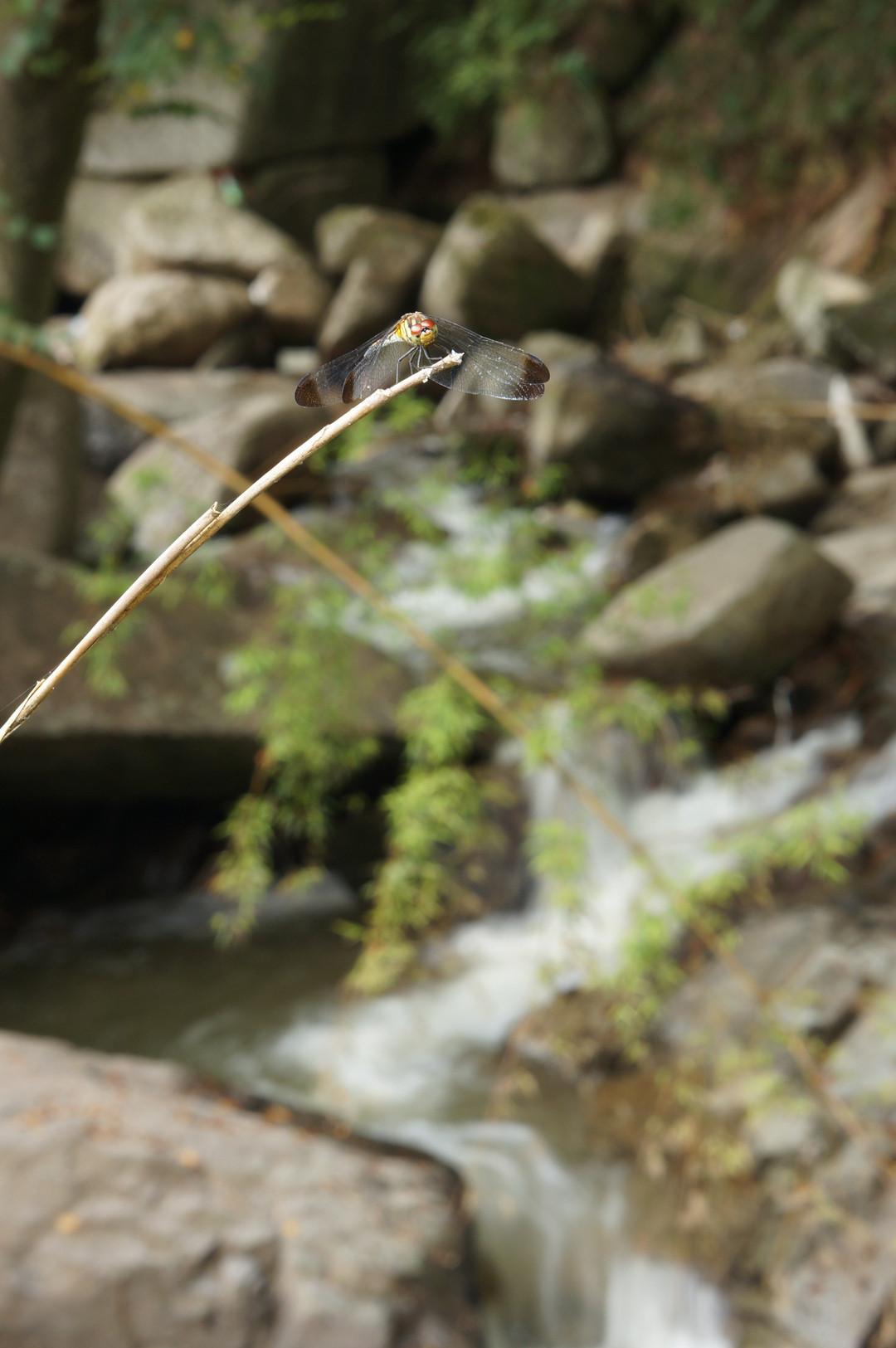 小滝の音を聞きながら涼んでいるとんぼを見つけました。
