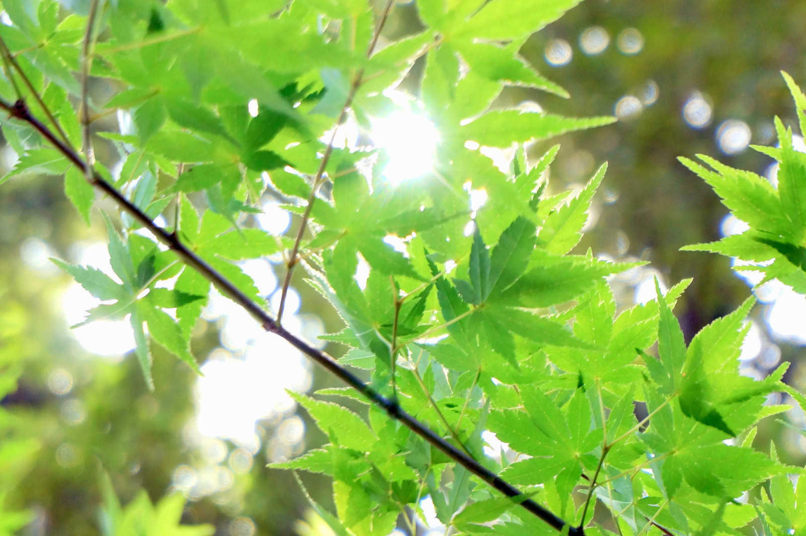 青もみじは、爽やかで大好きです(*^_^*) 玉ボケの練習をしてみました・・・ちょっと、玉ボケというよりピンボケでしょうか?^_^;