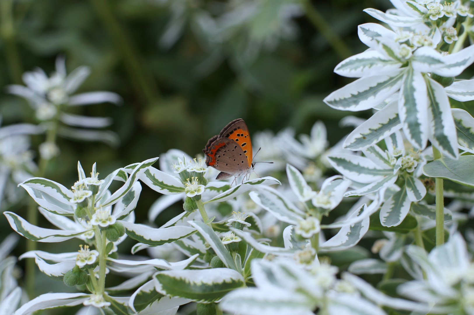初雪草の上を優雅にベニシジミが歩いていました。