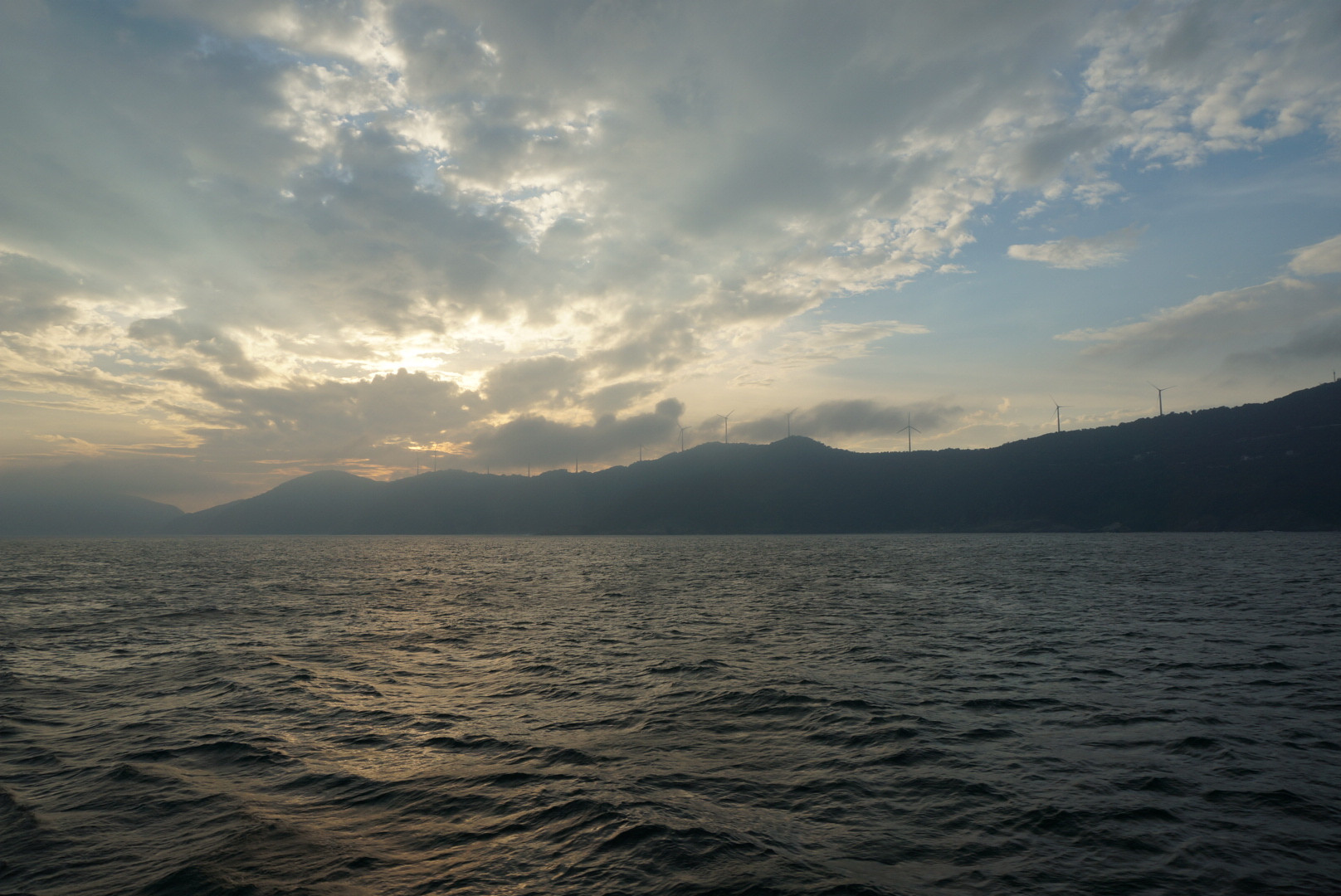 大分から愛媛へ向かうフェリーより って風が強すぎたら風車止めるんですよね。