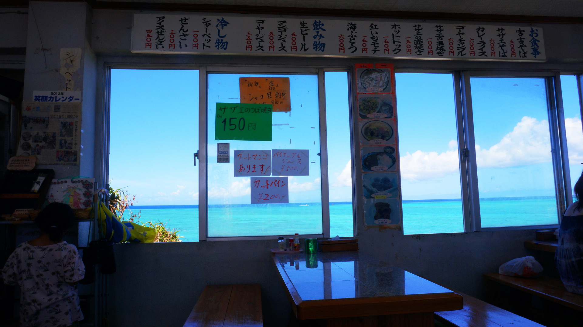 夏休みに立ち寄った旅先のお土産屋さんでの一枚。窓から見える海はなんともいえない透き通る青さで感動モノでした!