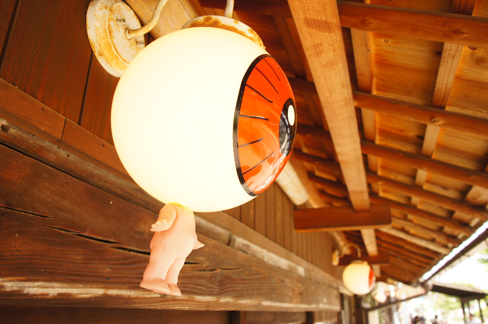 水木しげるロードのお土産屋さんの軒下で発見。 夜はその目で夜道を照らしてくれるのでしょうか・・・?