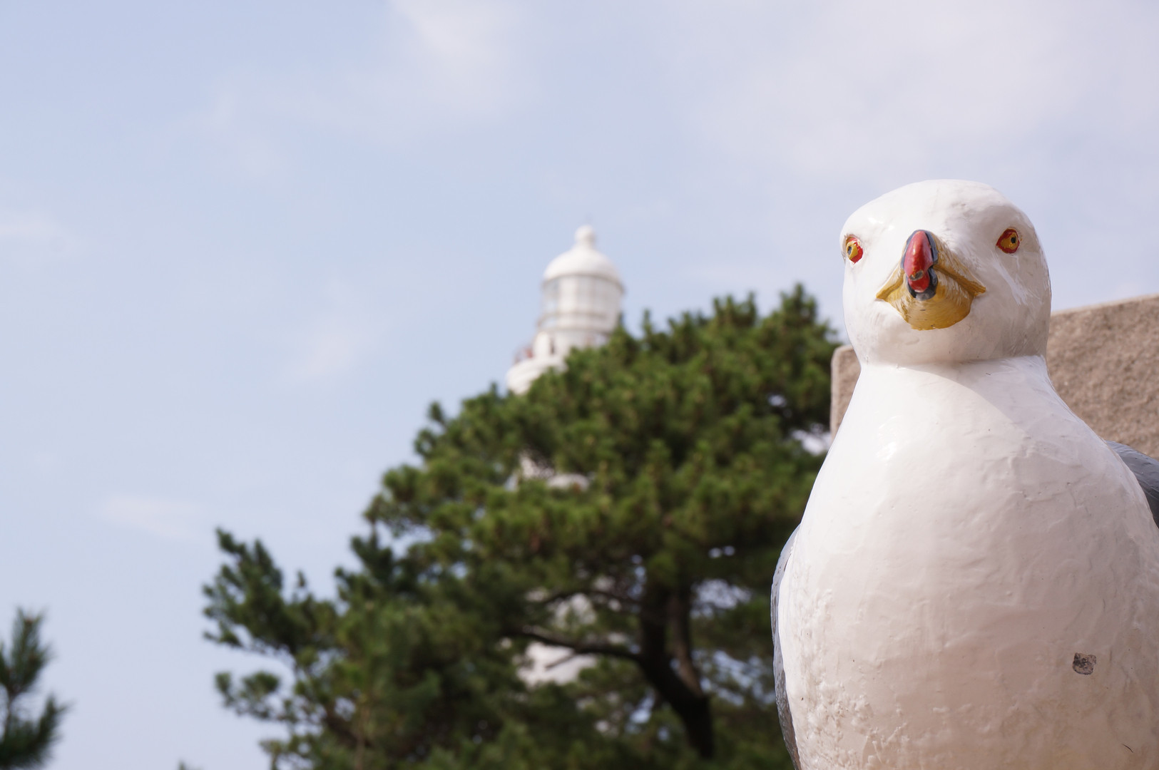 Sharl101さんの「あんた、誰?」を拝見させたいただいた際、どこかで… と思ったけれど、そうそう、このうみねこ(?)さんです。本物はSharl101さんの写真のように、もっと、ずっと凝視されるものなのですね~ 奥は日御碕灯台です