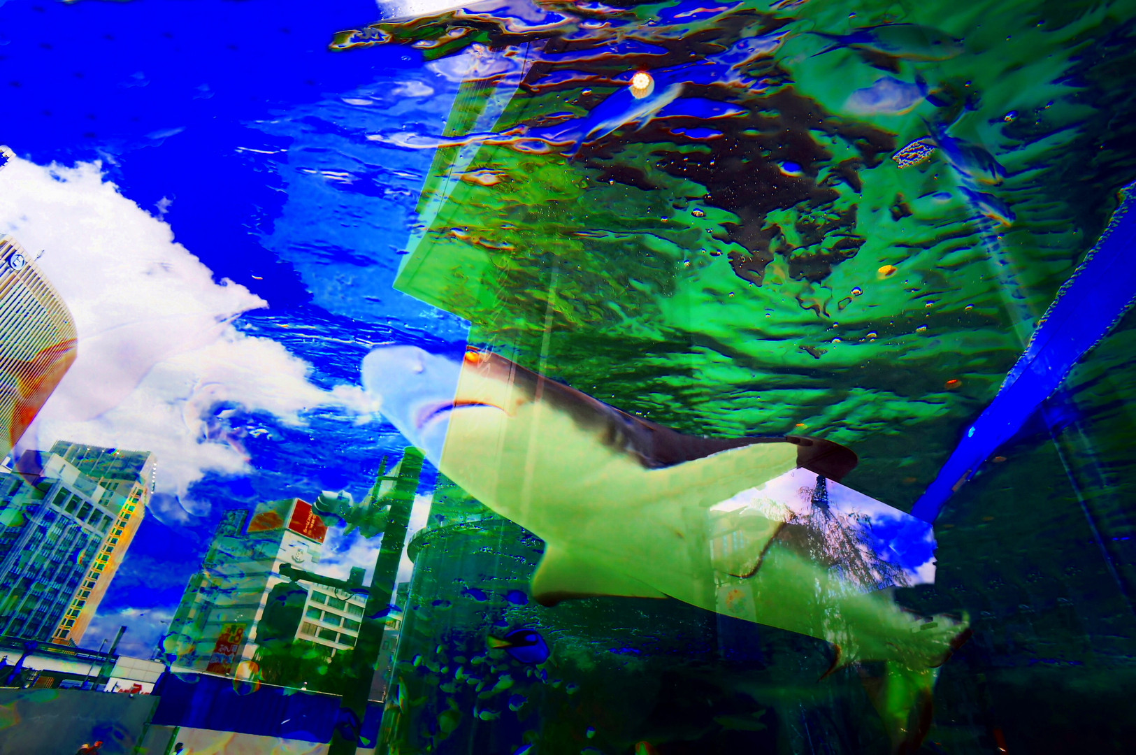暑かった今年の夏、毎年恒例の東京銀座の野外水族館。沖縄の水族館からサメも来ました。