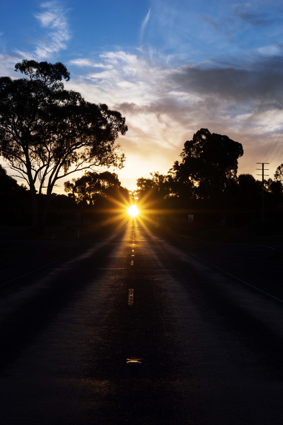 かなり長い直線道路のど真ん中に夕陽が沈んでびっくりw