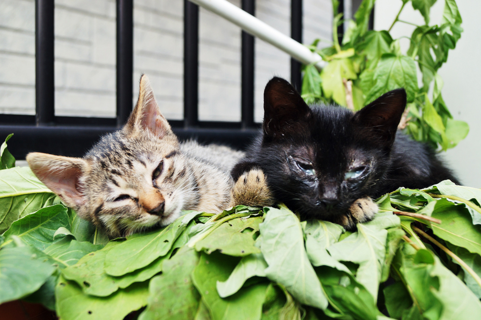 黒い猫が風邪ひいてて目やにがひどい・・・かわいそう