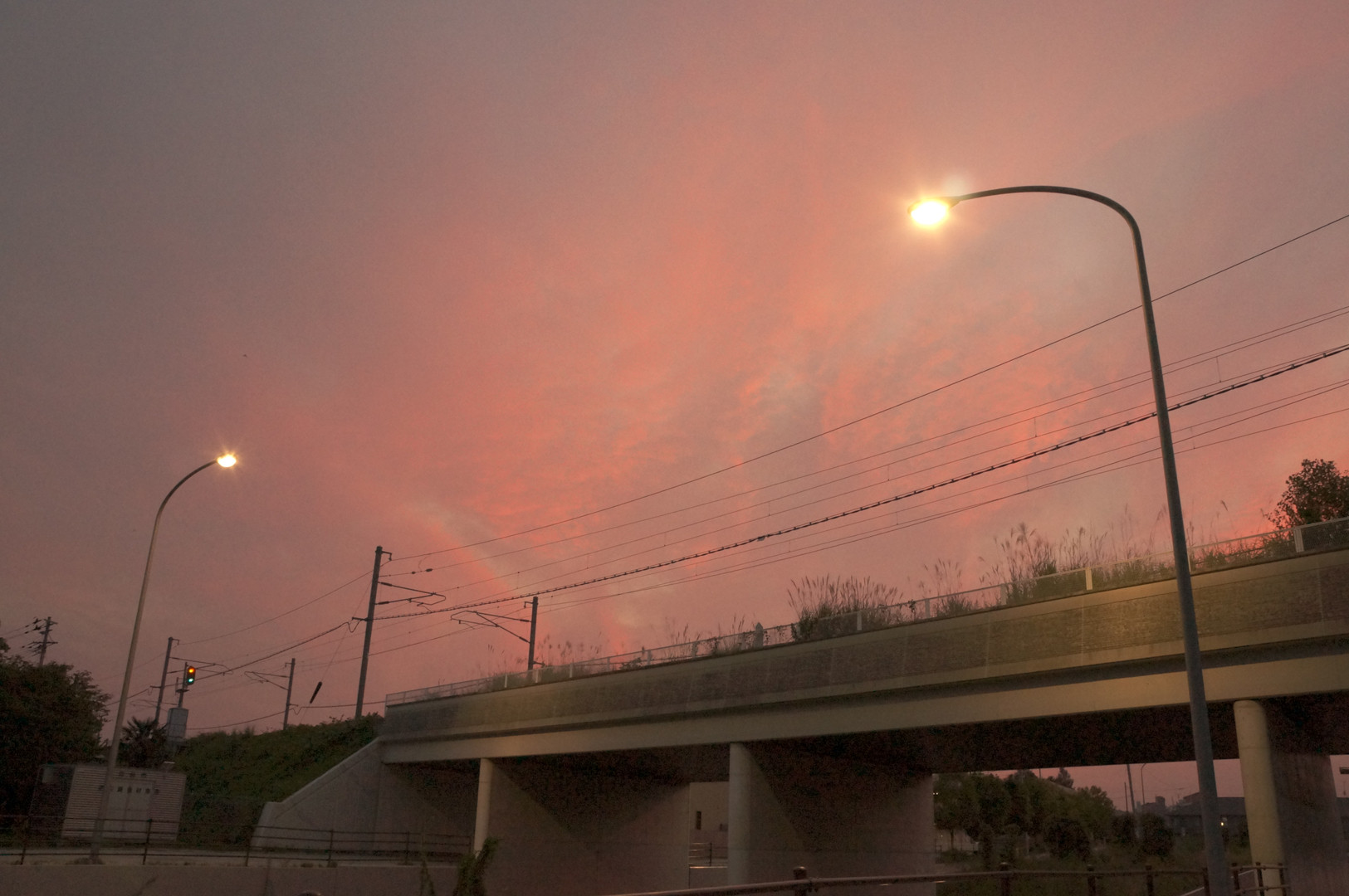 いつも通る場所、犬と一緒です。 貨物列車を一人と一匹は待てずに帰ってきました。 いつも思うのです。 二つのライトが“織姫と彦星”のようだと…。